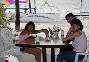 店は、回りに壁がなく、気持ちよい風が吹きこんできて、きれいな海が見えてとても気持ちよかったです。