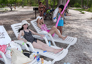 傷にしみそうなのでサンオイルもつけずに寝椅子で横になっていました。